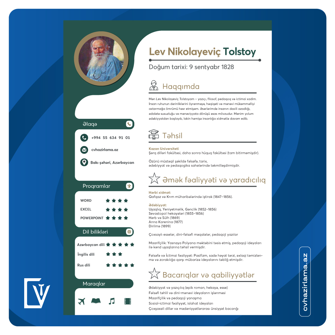 CV məlumatlarını asanlıqla hazırlaya bilərsiniz. 👍